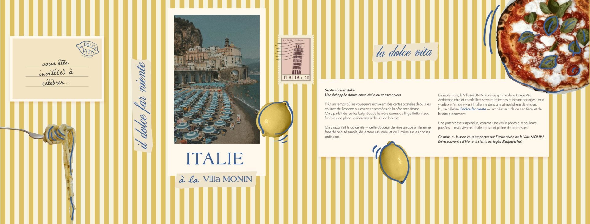 On y racontait la dolce vita — cette douceur de vivre unique à l’italienne, faite de beauté simple, de lenteur assumée, et de lumière sur les choses ordinaires.